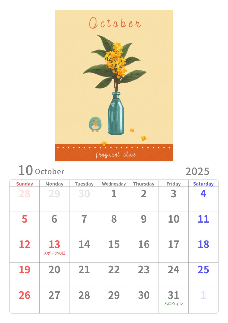 毎度ご訪問頂けましてありがとうございます。10月のカレンダーをいただきました!ご覧くださいませ〜